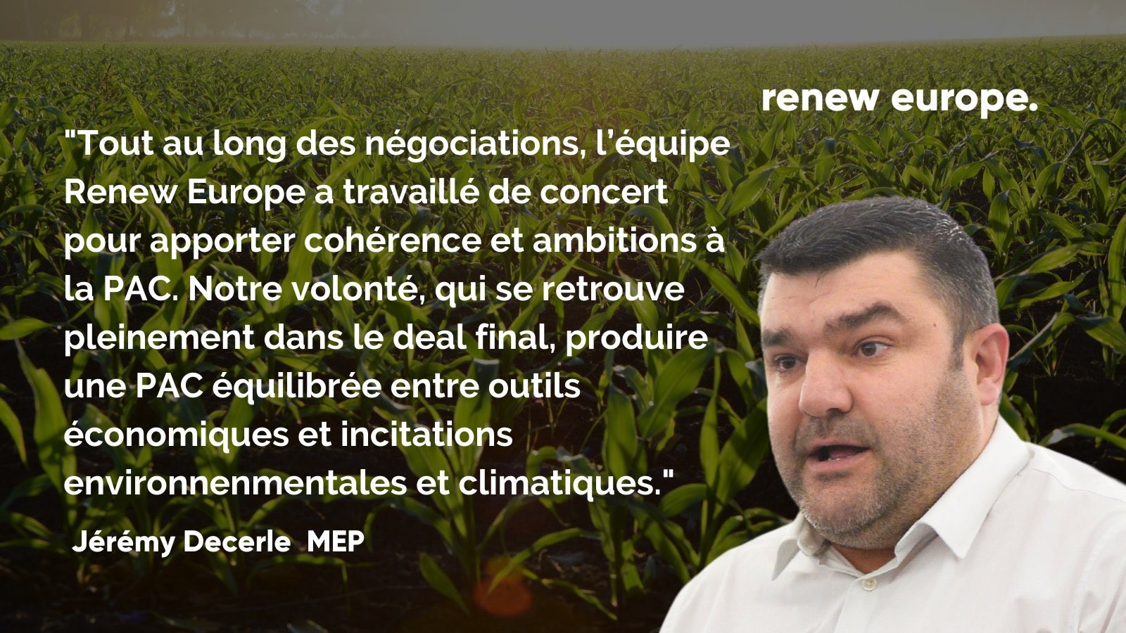 Votée à une large majorité au sein du Parlement, cette nouvelle Pac marque donc une nouvelle étape. Cette nouvelle étape a notamment pu être franchie grâce à la mobilisation sans faille de nombreux euro-députés et je veux ici rendre hommage au travail colossale de Jérémy Decerle, appuyé par Pascal Canfin et Irène Tolleret, et de leurs trois équipes. Bravo à eux et merci !